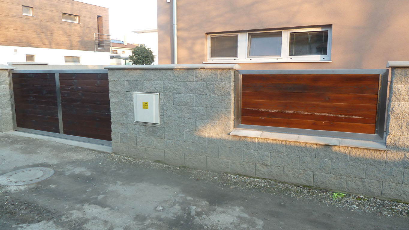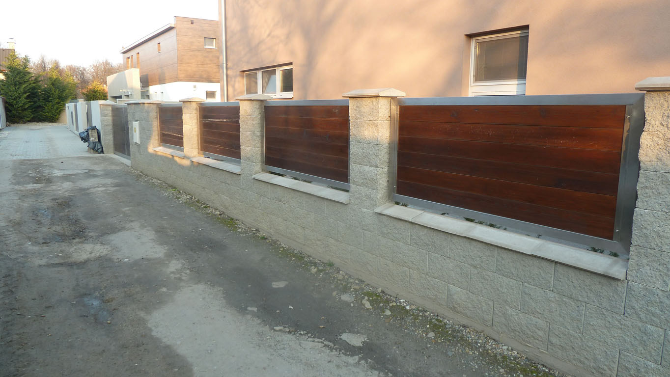 - výplne: kombinácie nereze, ocele, perforovaných plechov a dreva